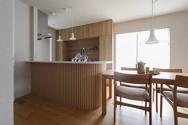 キッチン扉の面材のチョイスも、空間全体との統一感が意識したもの