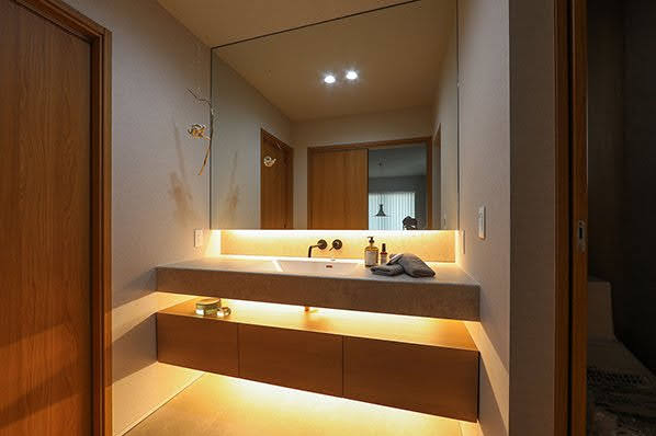 家事の動線を考慮して、ランドリールームと脱衣室を兼ねた空間も、ゆとりを持って設計されている